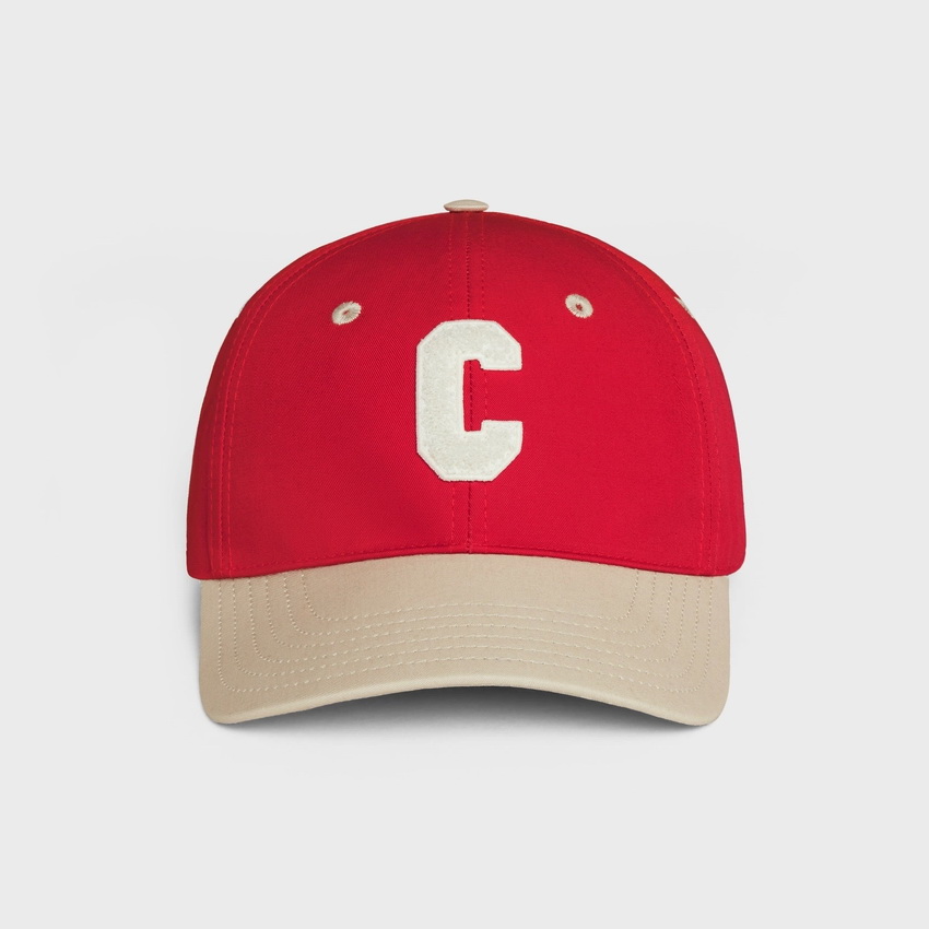 Celine Initial C Logo Baseball Cap Cotton Red /Beige